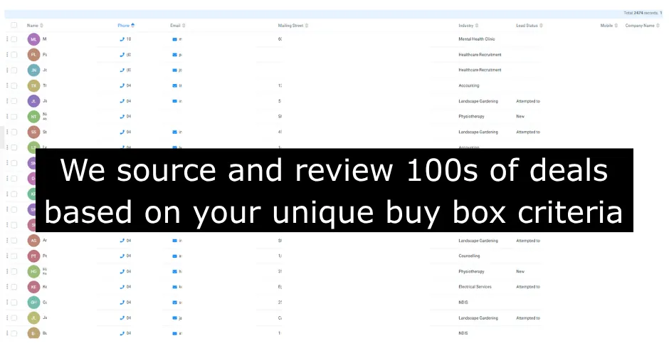 Our systems uncover off-market opportunities, start real conversations with owners, and manage the process right through to settlement so you can focus on buying the right business, not chasing listings.